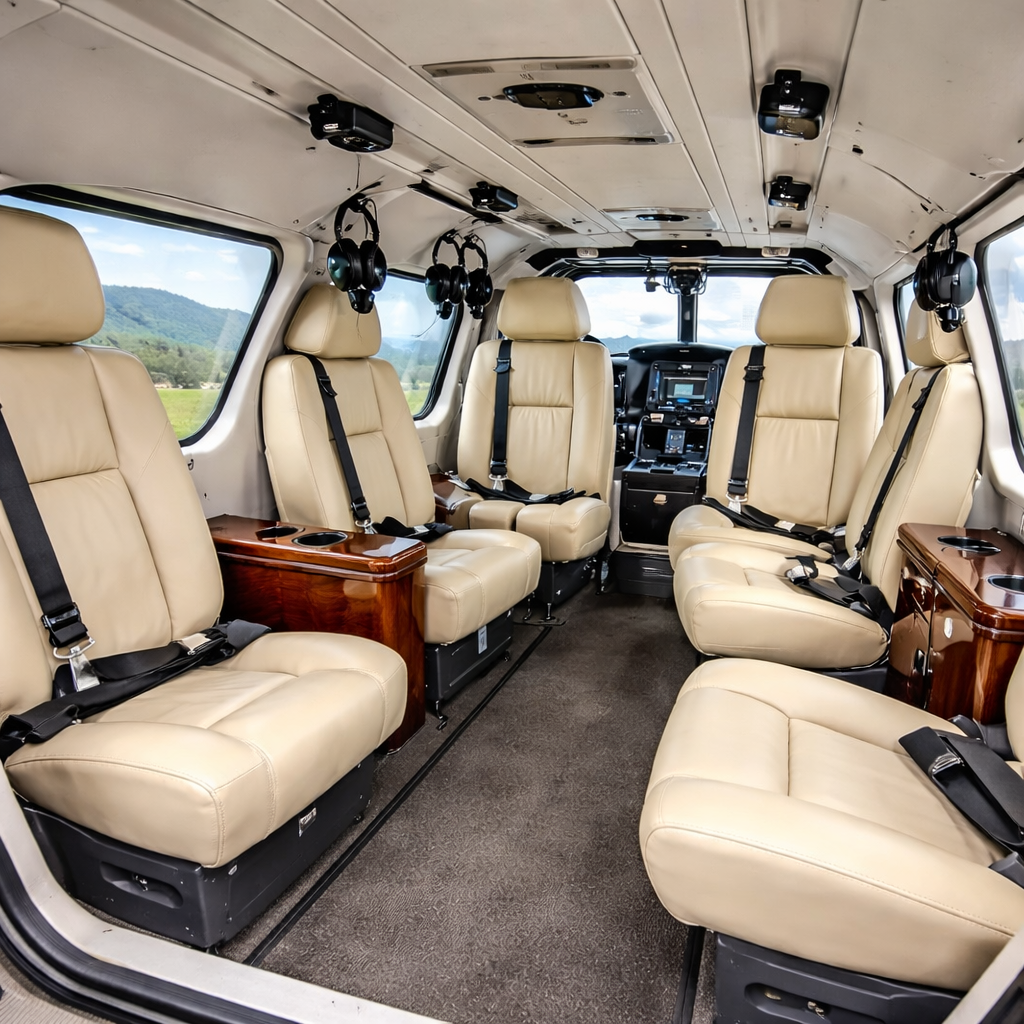 The EC135 features a modern and quiet cabin with comfortable seating for up to six passengers. Its flat floor design, large windows, and low vibration levels create a smooth and pleasant flying experience ideal for executive and VIP travel.